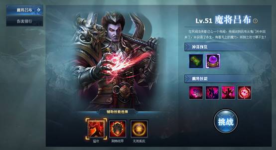 2.挑战魔将吕布前,可挑选一个辅助技能,此技能在与魔将战斗中产生强力辅助效果。