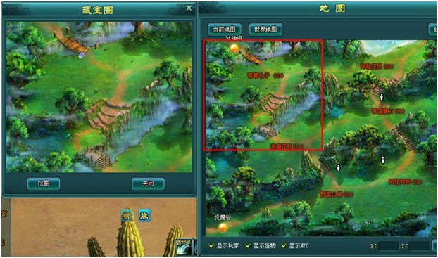 1、藏宝图显示的是神魔仙界某一野外地图的一部分。