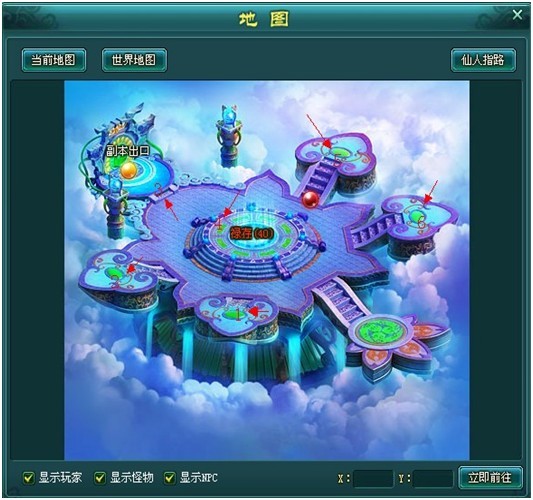 3、在野外地图对应位置单击左键,可以自动寻路过去或者使用筋斗云飞到对应位置。
