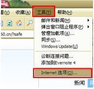 第一步:点击浏览器界面的“工具”栏目,选择“Inter**选项”: