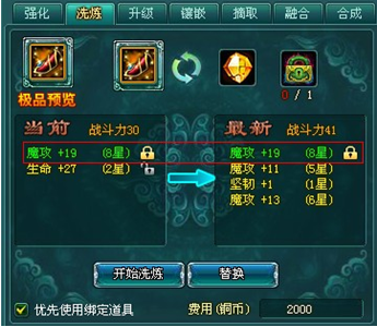 2、 使用绑定材料对非绑定的装备进行洗练,洗练后该装备会被绑定。