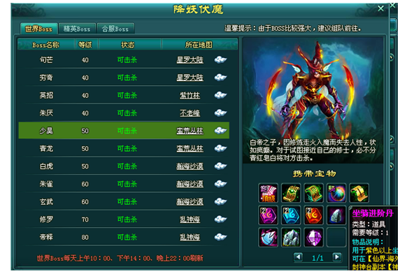 坐骑品阶提升方式:通过击杀BOSS,神游等方法,获得坐骑进阶丹,即有几率让自己的宝贝坐骑等阶提升。
