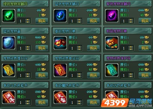 4)商城里有蓝色宠物蛋都买,售价110元宝。