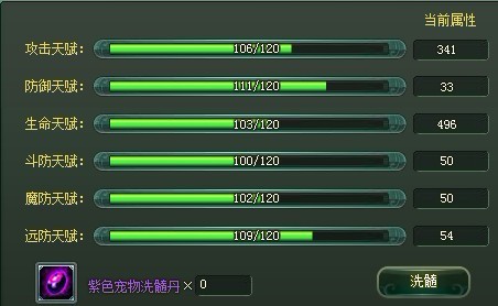 6)洗髓,洗髓宠物,可以把宠物本身属性的百分率提高或降低。