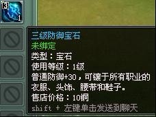 首先推荐的是镶嵌一个3级的防御宝石,这类宝石还是很容易获得的,包括修罗场和赤月窟的BOSS都能掉落: