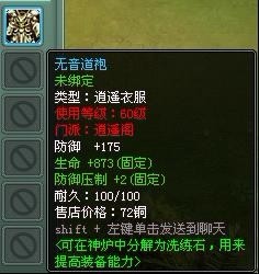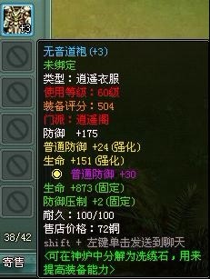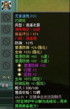 其实说到最后,防御类的装备有衣服、靴子、帽子、腰带,这些装备基本上就是加各种防御,最好的办法就是全都加一个普通的防御,然后轮流加各种门派的防御,剩下再加一些闪避和坚韧的,这样子打架就不会很容易被放倒!!