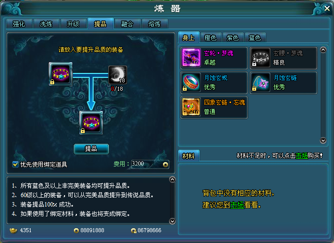 3. 如提升中使用了绑定材料,那么所得装备为绑定状态;
