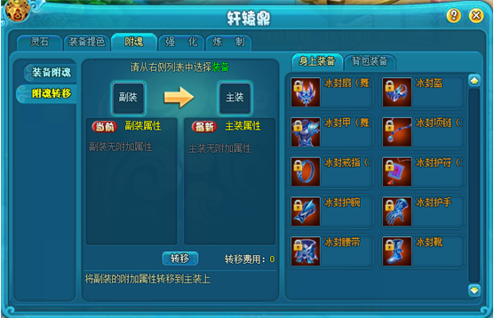 通过强化转移可以把装备的强化属性转移到新装备上。