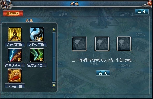 3个不同类型、相同等级的武魂可以进行合成,随即成为高一级的武魂,增加能力也会得到提升。如果对合成的武魂不满意,可以进行洗炼,随心所欲,获得你中意的武魂。