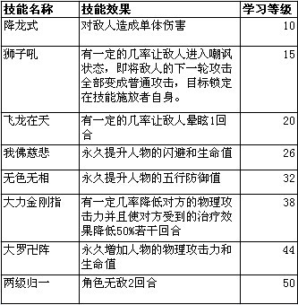 大罗殿技能表: