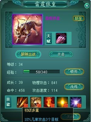 雷霆狼皇 | 狼皇雷鸣破 | 10%几率攻击5个目标并且15%几率令目标迟缓 |