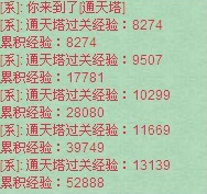 3. 通天塔通过每层后将会累积一定数量的经验,见下图