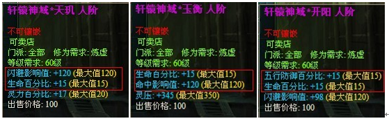 例如:得到了“轩辕神域*天权”并且希望更换其他属性,请点击选项“天权神域重置”,所有紫色领域均具有3条属性。