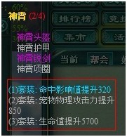 装备三件神霄套装可触发隐藏属性:增加宠物850点物理攻击值