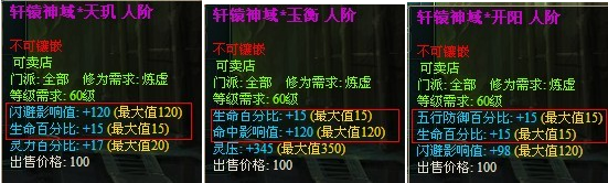 例如:得到了“轩辕神域*天权”并且希望更换其他属性,请点击选项“天权神域重置”,所有紫色领域均具有3条属性。
