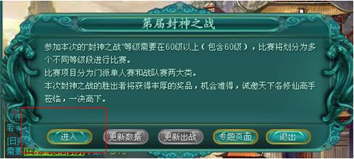 主界面左上角会出现一个按钮,点击可进入到“封神之战”的界面