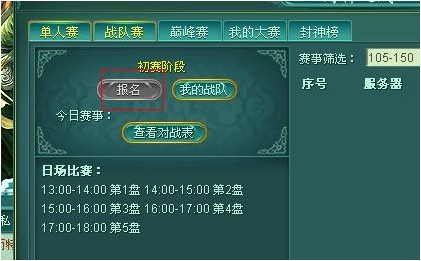 点战队赛可以进行报名,报名时间内,按钮变亮,不在报名时间段内,按钮为灰色。报名结束后可以通过查看对战表来查看自己的对手是谁。