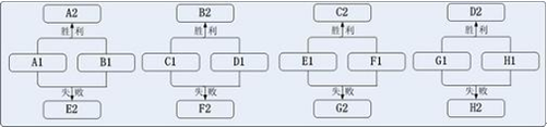 3、每轮比赛胜利的进入到胜者组,失败的进入到败者组,然后系统进行分组安排下轮比赛。