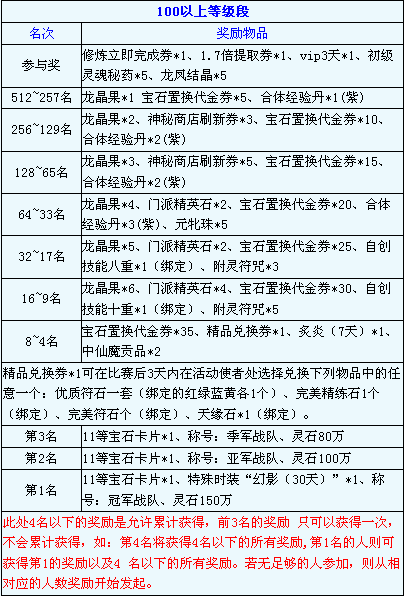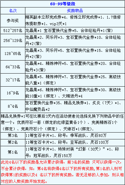 特别奖:冠军队所在的服,在比赛发奖后的第二天将可以全服每人领取2倍经验药1瓶。