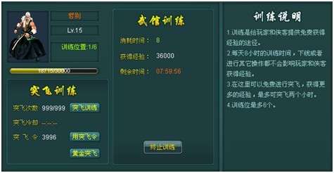 《逍遥剑》中的训练功能是侠客稳定、快速获得经验的渠道。
