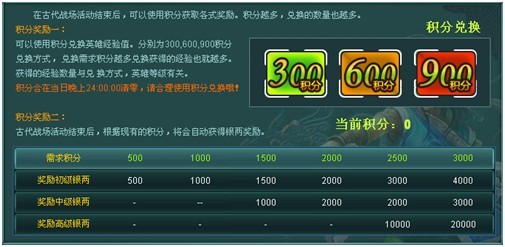 获得的积分可以在古代战场结束后兑换经验,系统更会根据每位玩家获得的积分多少发放银两