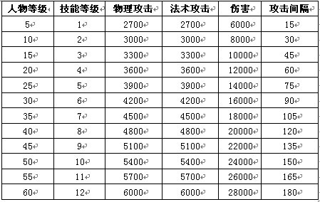 技能说明:控制敌之十八大关节,提升自身2700物理和法术攻击,并给与对手2人【最多6人】致命打击,造成6000点伤害,同时增加对手15攻击间隔。(每场战斗只能用一次)