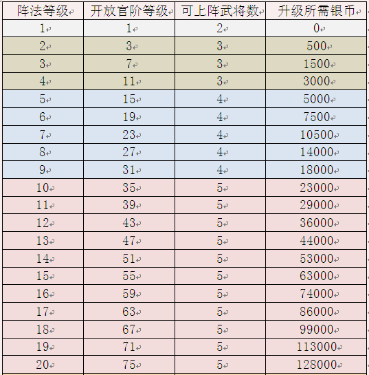 七、鱼鳞阵(每升一级可提升1%物攻) 八、车悬阵(每升一级可提升1%体质)