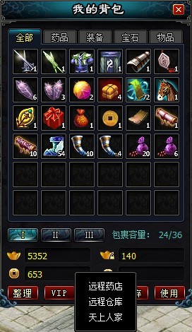 以上四种VIP卡都可以通过在商城里面的常用道具购买获得,不同类型的VIP卡,可以拥有的都不一样的哦,并且玩家通过点击背包里面的VIP选项可以进行远程仓库、远程药店以及天上人家的额外使用哦!享受尊贵特权!