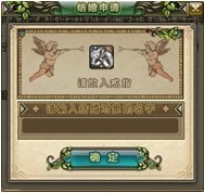 2.玩家完成任务,持有结婚戒指并点击使用后可以申请结婚,求婚戒指/求婚钻戒可以通过荣誉兑换和VIP商城购买两种渠道获得。(结婚双方必须必须在同个队伍中,双方必须都处于未婚、异性状态。并且已经完成“爱的考验”任务,如果被申请方选择同意,就求婚成功啦!)