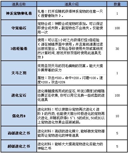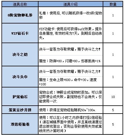 注:1)玩家拥有的单个宠物同时满足以上两项,可以任选2个道具,道具选择不能重复。